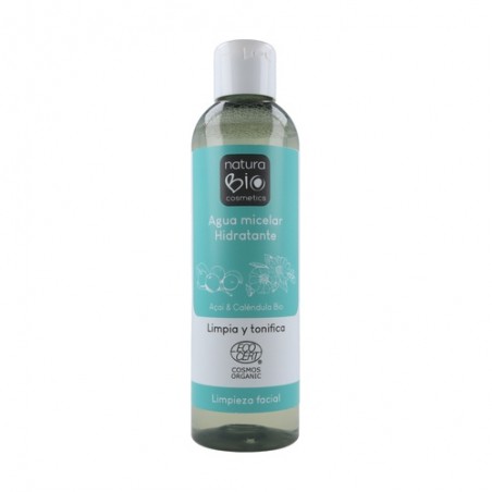 Agua micelar hidratante de Natura Bio limpia delicadamente la piel eliminando los restos de suciedad, maquillaje e impurezas. Deja la piel calmada, hidratada y suave.
