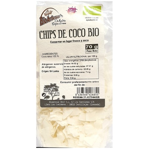 Deliciosas Chips de Coco de Bioartesa. Perfecta para entre comidas o para quitar el hambre por su alto contenido en fibra.